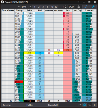 Die Ordereingabe kann im Smart DOM und im Chart Trader erfolgen. Mit dem Chart Trader kann man aus dem Chart heraus und auch über das Panel neben dem Chart handeln.