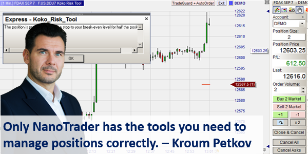 This risk management tool provides traders with practical tips how to manage their open position and their risk. The tips appear automatically after a position has been opened.